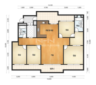방4개, 욕실2개
