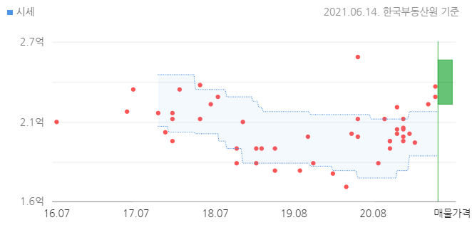 한국부동산원에서 제공하는 시세 정보는 1억9500~2억2500만원입니다.