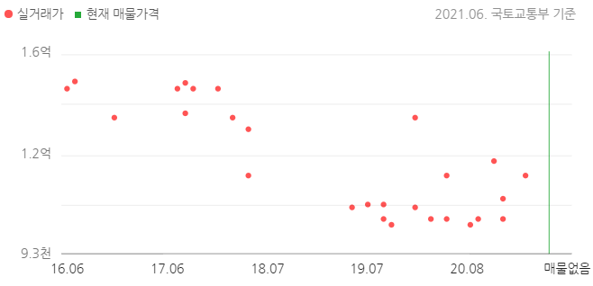 매매 실거래가는 가장 최근 거래가 2021년 4월 1억2000만원 11층, 2021년 1월 1억1200만원 14층이 계약되었습니다.