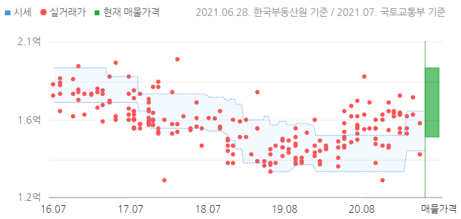 한국부동산원에서 제공하는 매매 시세는 1억4700~ 1억7000만원입니다.