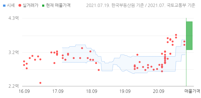 한국부동산원에서 제공하는 매매 시세는 3억2000~ 3억6500만원입니다.